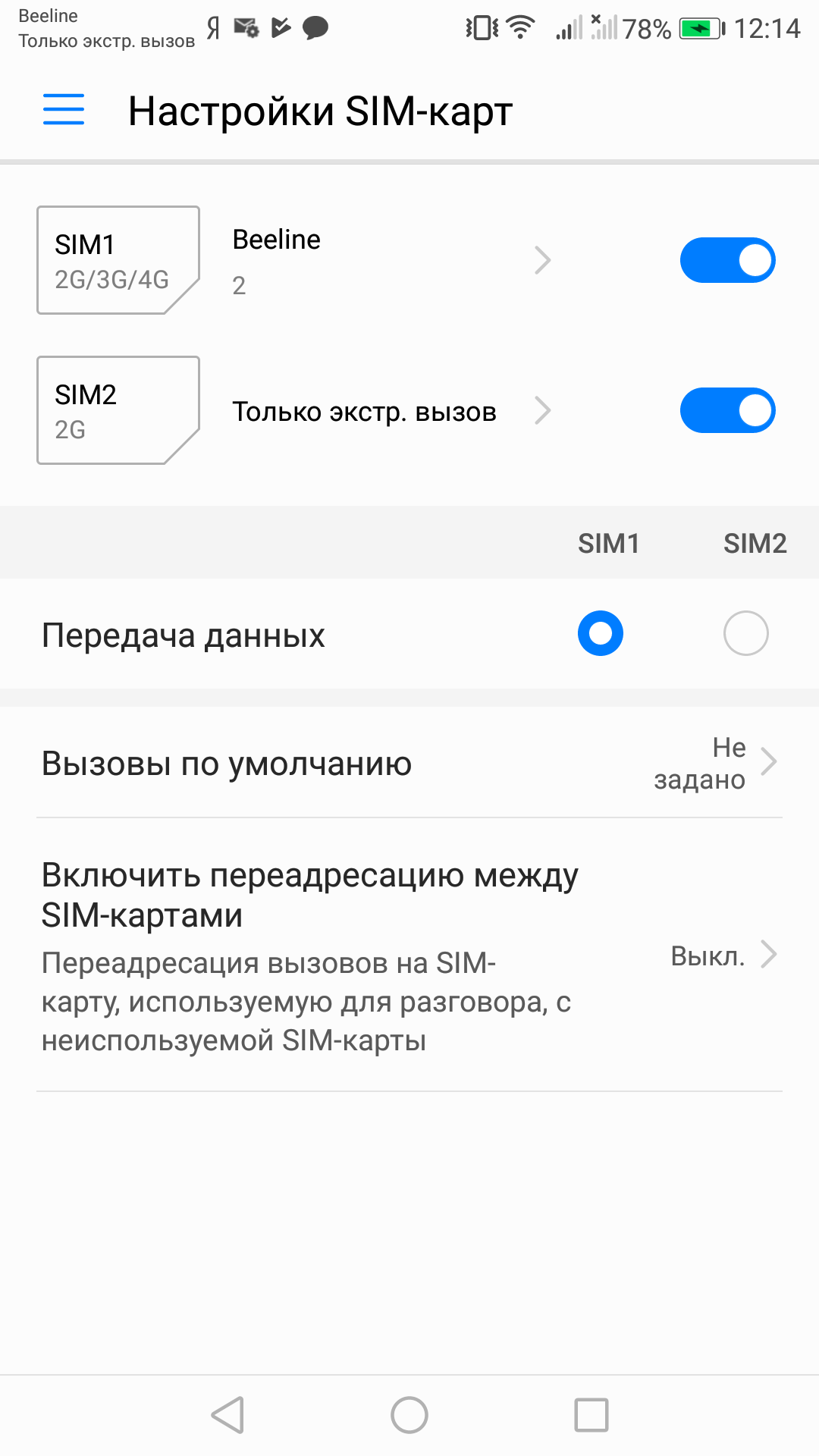 Платформа не поддерживает активное ожидание обеих SIM-карт в 3G/4G одновременно. То есть если для передачи данных в 3G/4G назначена одна карта, другая может находиться в активном ожидании в сети только в 2G. Интерфейс в смартфонах Huawei традиционно не предлагает заранее выбрать определенную карту для отправки SMS, это можно сделать только для голосовых вызовов и передачи данных. Работают карты в режиме Dual SIM Dual Standby, радиомодем здесь один.