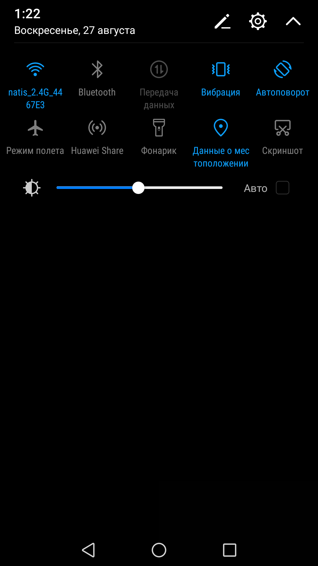 Аппаратных управляющих кнопок под экраном нет, зато можно настроить набор кнопок в панели на экране.