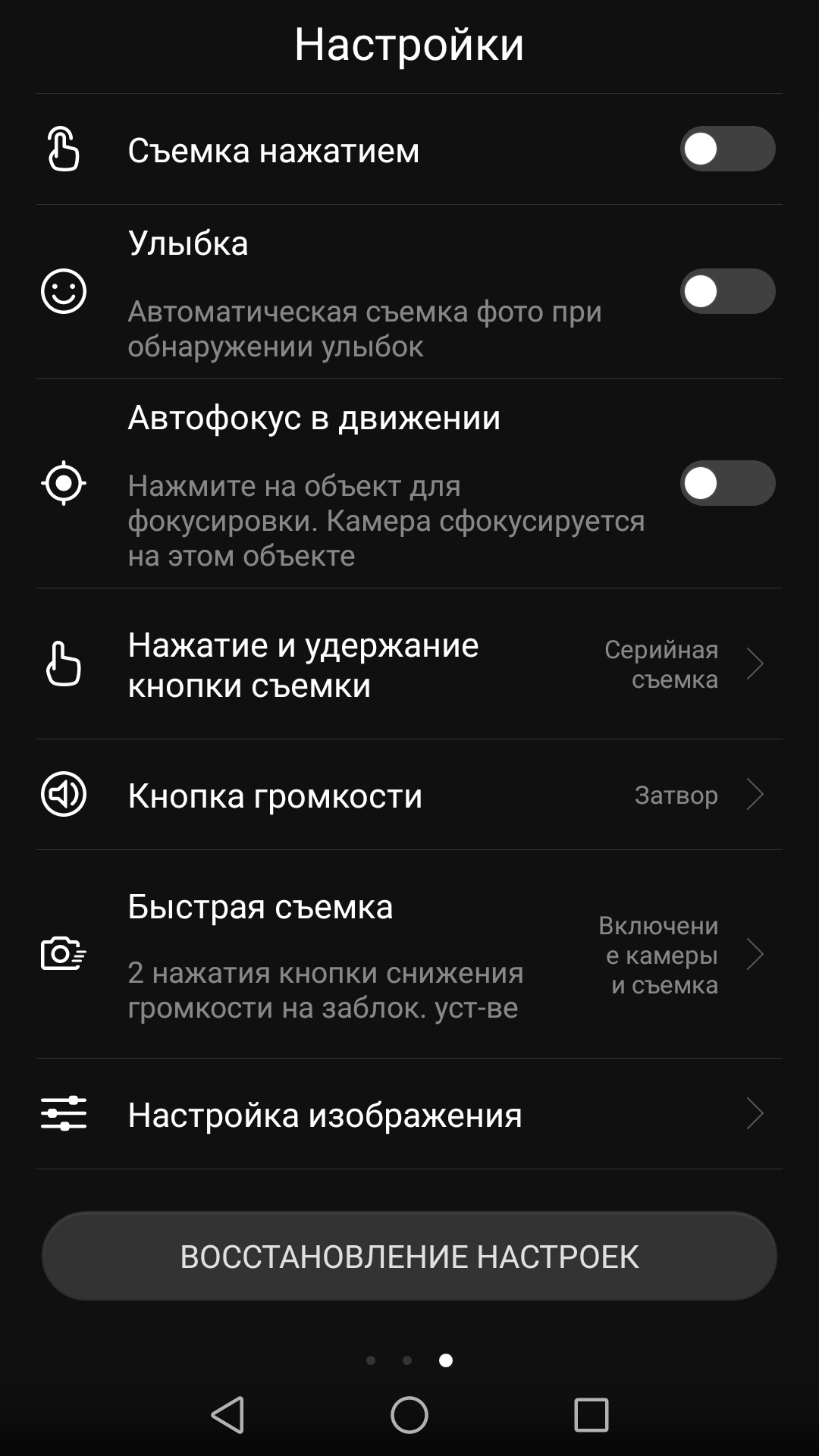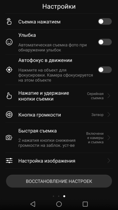 В меню есть ручные настройки для фото- и видеосъемки: выдержка (от 1/4000 до 30 с), светочувствительность (до ISO 3200), экспокоррекция, баланс белого, а также варианты фокусировки. До них можно добраться, выдвинув панель снизу, то есть ручной режим тут всегда под рукой. Появляется и возможность сохранять снимки в RAW. Камера предлагает большое количество сюжетных режимов (от HDR до съемки света или еды), часть из них можно скачать самостоятельно.
