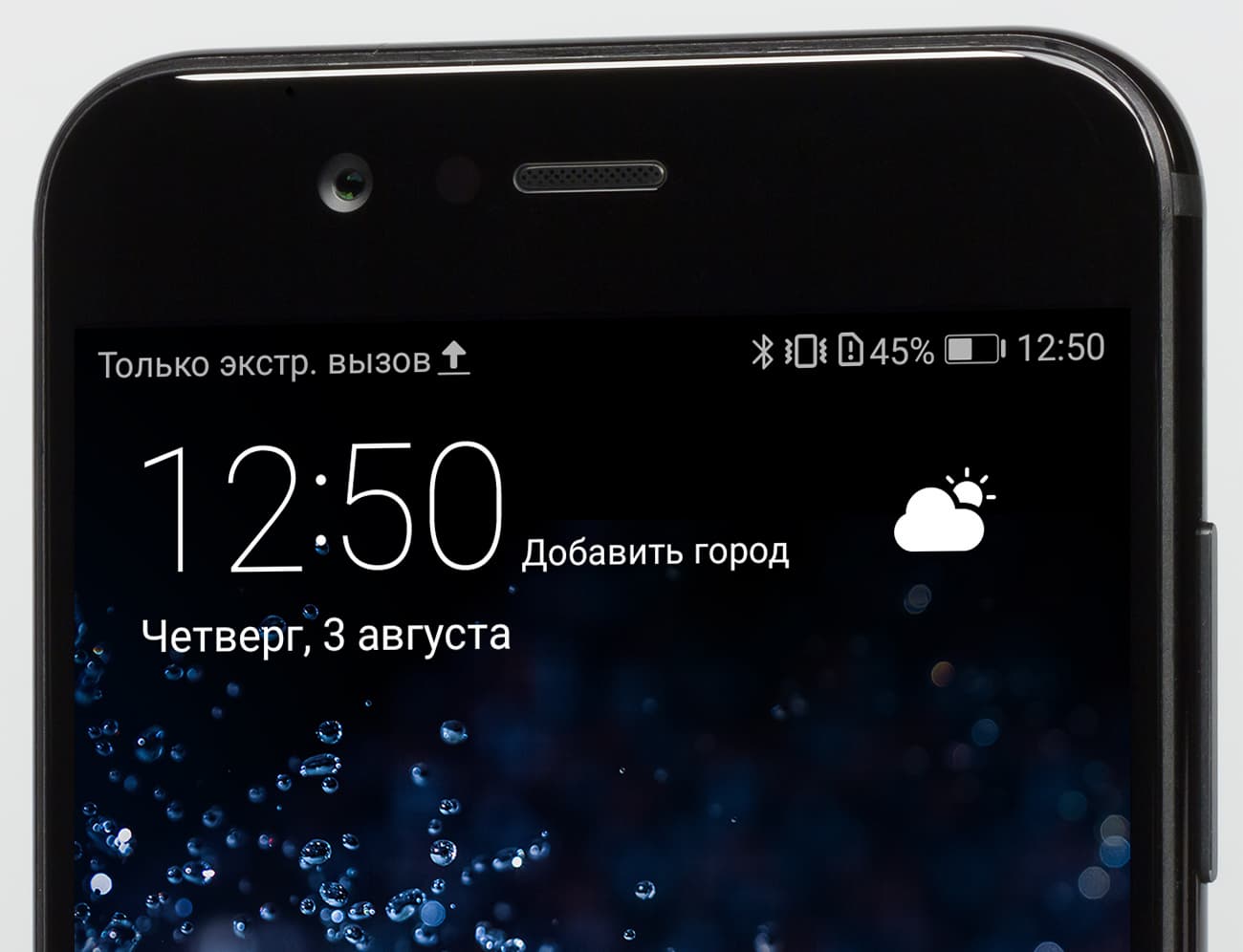 Передняя панель полностью покрыта 2.5D-стеклом с покатыми краями. В верхней части над экраном привычно разместились датчики, глазок фронтальной камеры, а также светодиодный индикатор событий. Его мелкая, едва приметная точка светит практически посередине над решеткой разговорного динамика.