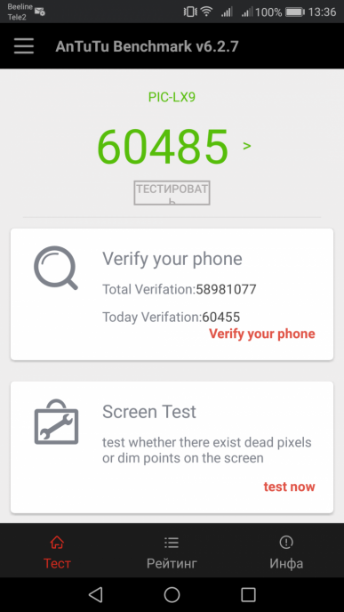 | AnTuTu (v6.x) (больше — лучше) | 60485 | 61638 | 50597 | 63146 | 45287 |