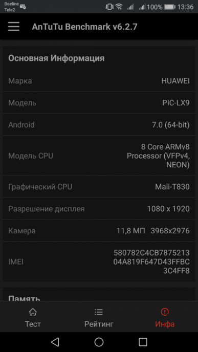 SoC HiSilicon Kirin 659 — это относительно свежее решение, предназначенное для смартфонов и планшетов среднего класса. SoC достаточно производительная, уровня Qualcomm Snapdragon 625, в тесте AnTuTu герой обзора демонстрирует вполне достойные 60К с лишним очков, это уверенный средний уровень.