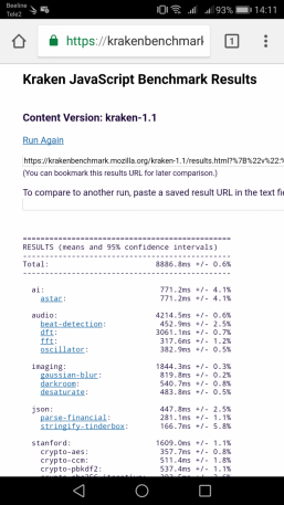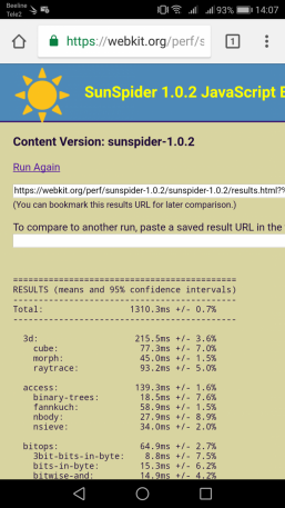 Что касается бенчмарков для оценки скорости движка javascript, то стоит всегда делать скидку на то, что в них результаты существенно зависят от браузера, в котором запускаются, так что сравнение может быть истинно корректным только на одинаковых ОС и браузерах, а такая возможность имеется при тестировании не всегда. В случае с ОС Android мы всегда стараемся использовать Google Chrome.