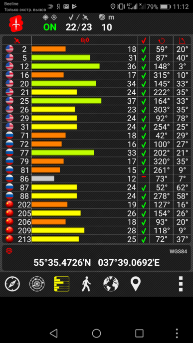 Навигационный модуль работает с GPS (с A-GPS), с отечественной Глонасс и с китайской Beidou. Первые спутники при холодном старте обнаруживаются в течение десятков секунд, точность позиционирования высокая. Имеется встроенный датчик магнитного поля для функционирования компаса.