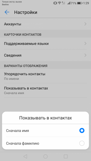 Телефонное приложение поддерживает Smart Dial, то есть во время набора телефонного номера сразу осуществляется и поиск по первым буквам в контактах. Способы сортировки и отображения контактов стандартны для интерфейса Android.