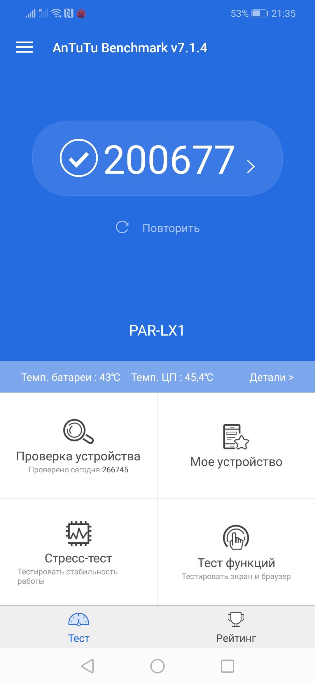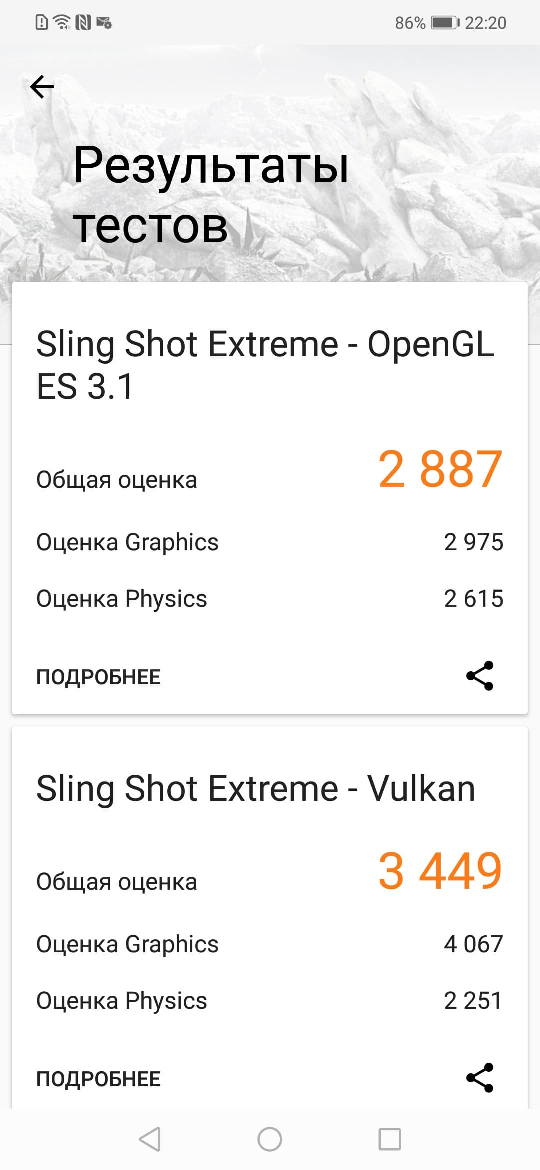 HiSilicon Kirin 970 — платформа не флагманская, но очень мощная, это условный нижний топовый уровень, явно выше среднего. Топовую Qualcomm Snapdragon 845 она, конечно, не обгоняет, но во всем превосходит ту же Snapdragon 710. В реальных сценариях использования для этой SoC пока еще нет никаких преград. Она уверенно справляется с любыми поставленными перед ней задачами, в том числе и с самыми требовательными играми. Правда, наш тестовый экземпляр испытывал перегрев чуть ли не в каждом бенчмарке, но уровень производительности у него все равно остается высоким.