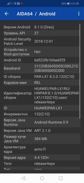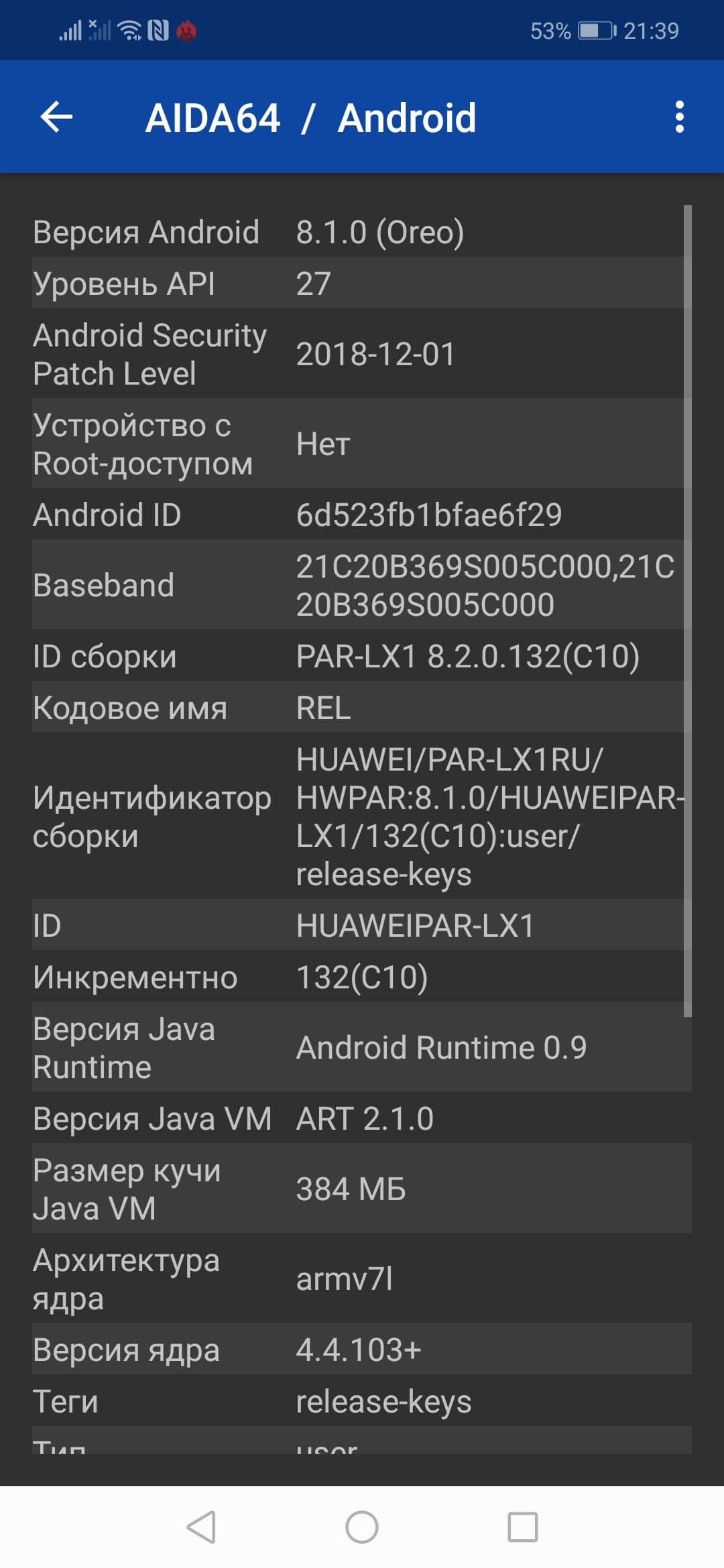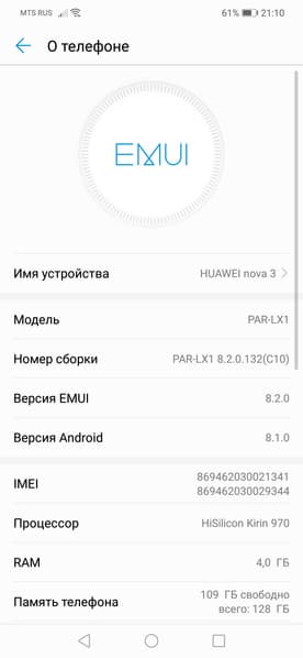 Основные характеристики Huawei nova 3 (модель PAR-LX1)