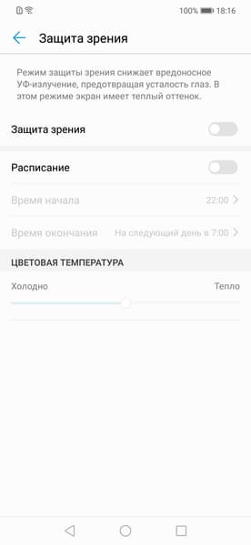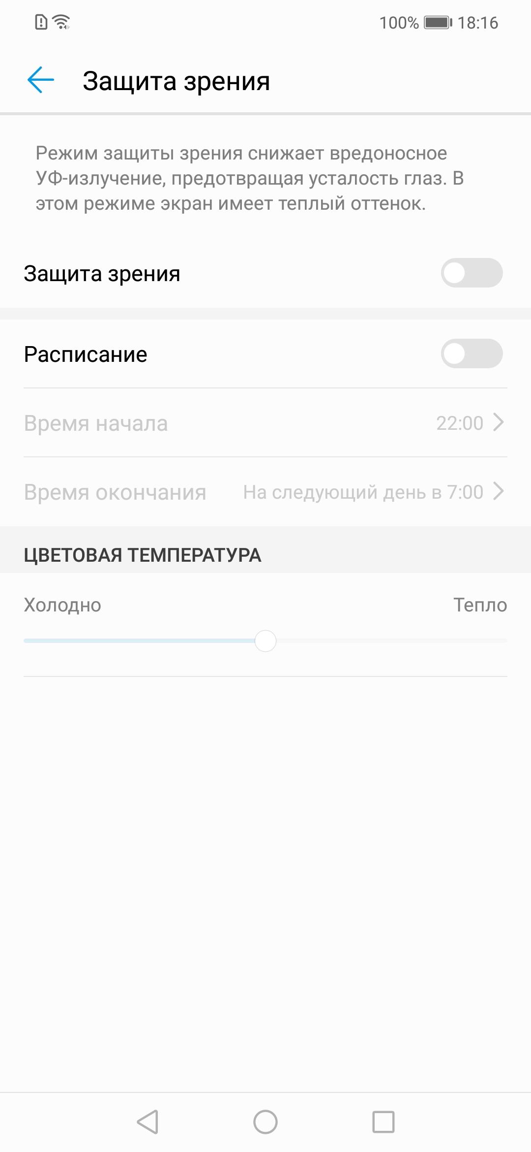Присутствует модная настройка, позволяющая снизить интенсивность синей компоненты.