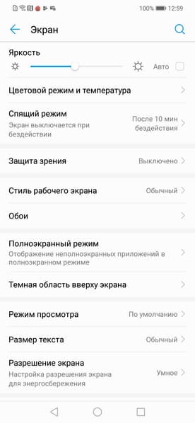 Яркость дисплея можно подстраивать вручную или использовать автоматические настройки, основанные на работе датчика внешнего освещения.