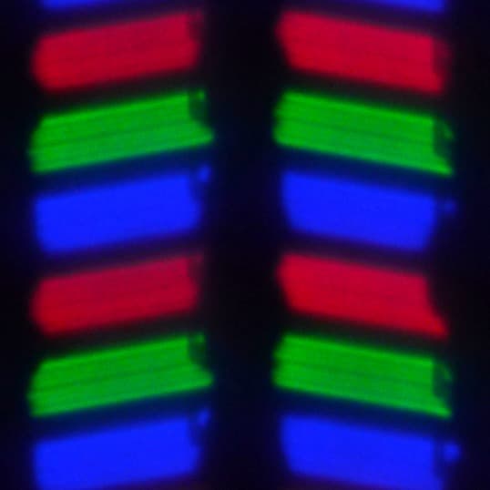 В данном смартфоне используется матрица типа IPS. Микрофотографии демонстрируют типичную для IPS структуру субпикселей: