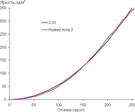 Контрастность (примерно в центре экрана) высокая — порядка 1300:1. Время отклика при переходе черный-белый-черный равно 20 мс (9 мс вкл. + 11 мс выкл.). Переход между полутонами серого 25% и 75% (по численному значению цвета) и обратно в сумме занимает 35 мс. Построенная по 32 точкам с равным интервалом по численному значению оттенка серого гамма-кривая не выявила завала ни в светах, ни в тенях. Показатель аппроксимирующей степенной функции равен 2,00, что ниже стандартного значения 2,2. При этом реальная гамма-кривая заметно отклоняется от степенной зависимости: