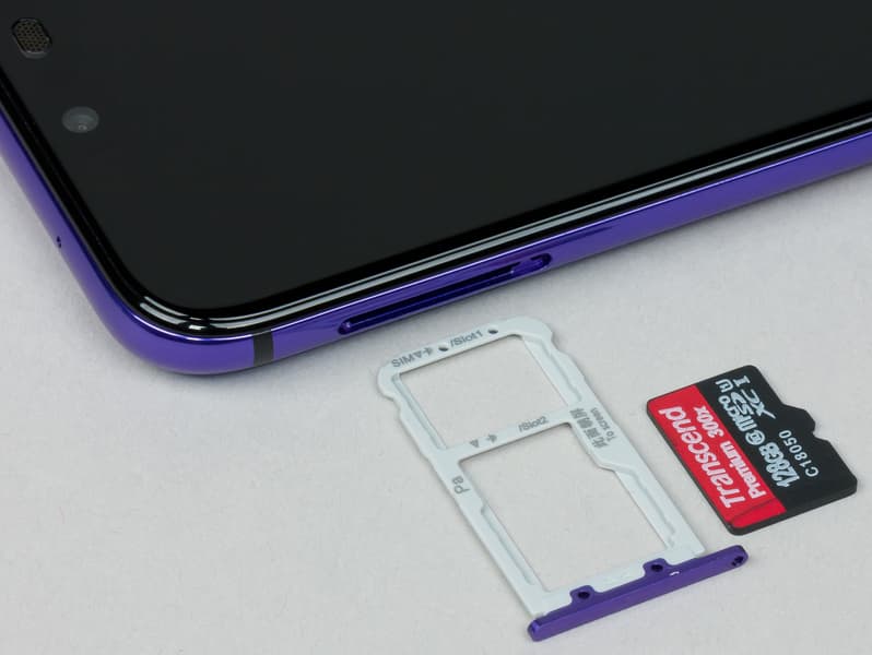 Разъем для карт гибридный, в него можно установить одновременно две карточки Nano-SIM или заменить одну из них на карту памяти microSD емкостью до 256 ГБ. Поддерживается горячая замена.