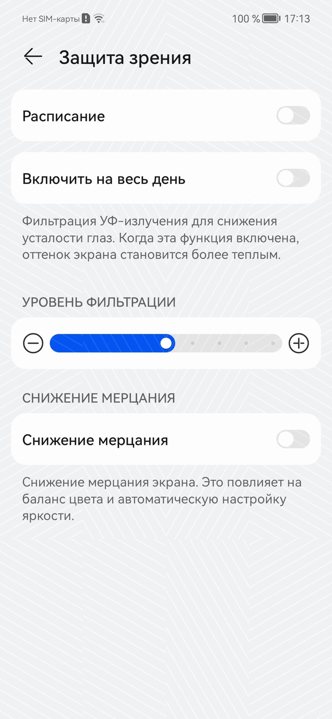 Те, кому все равно кажется, что мерцание вызывает дискомфорт, могут попробовать включить функцию с названием Снижение мерцания: