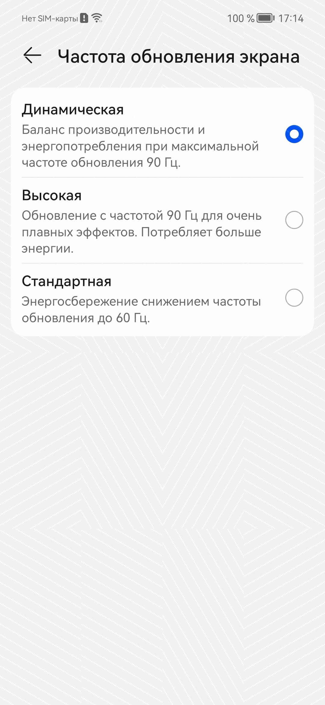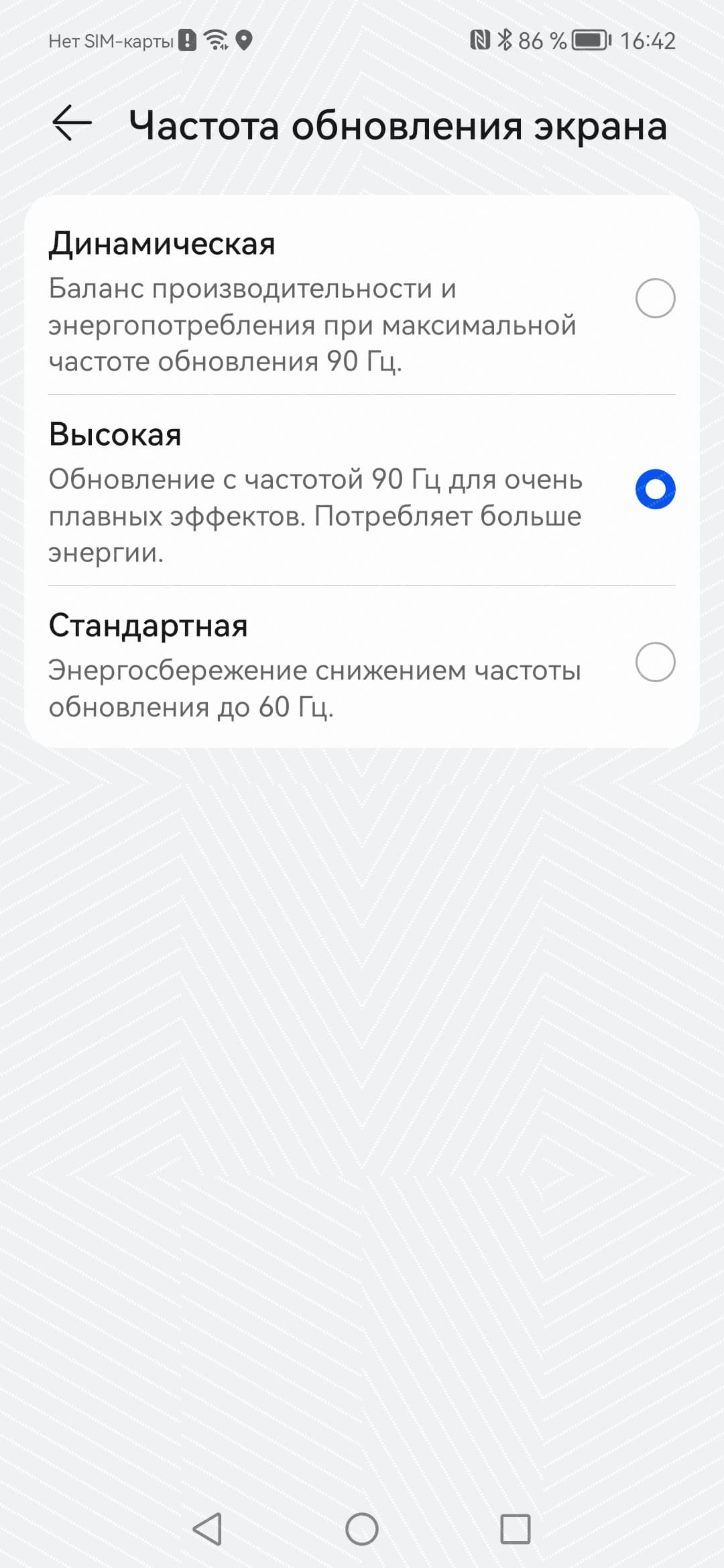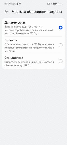 В настройках экрана можно включить режим с повышенной до 90 Гц частотой обновления: