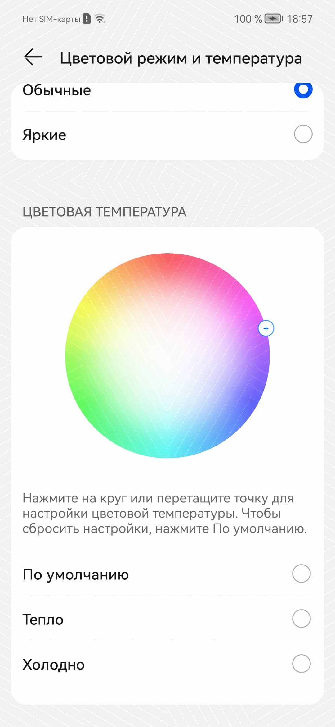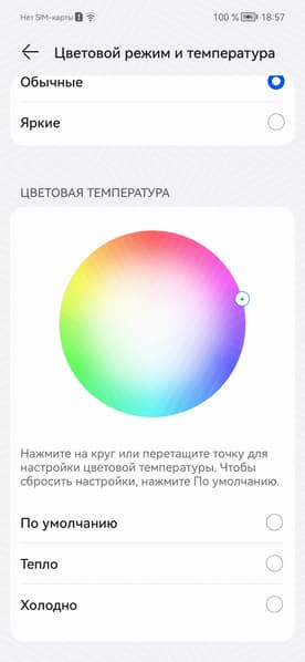 Фотография выше получена после выбора профиля Обычные в настройках экрана, всего их два: