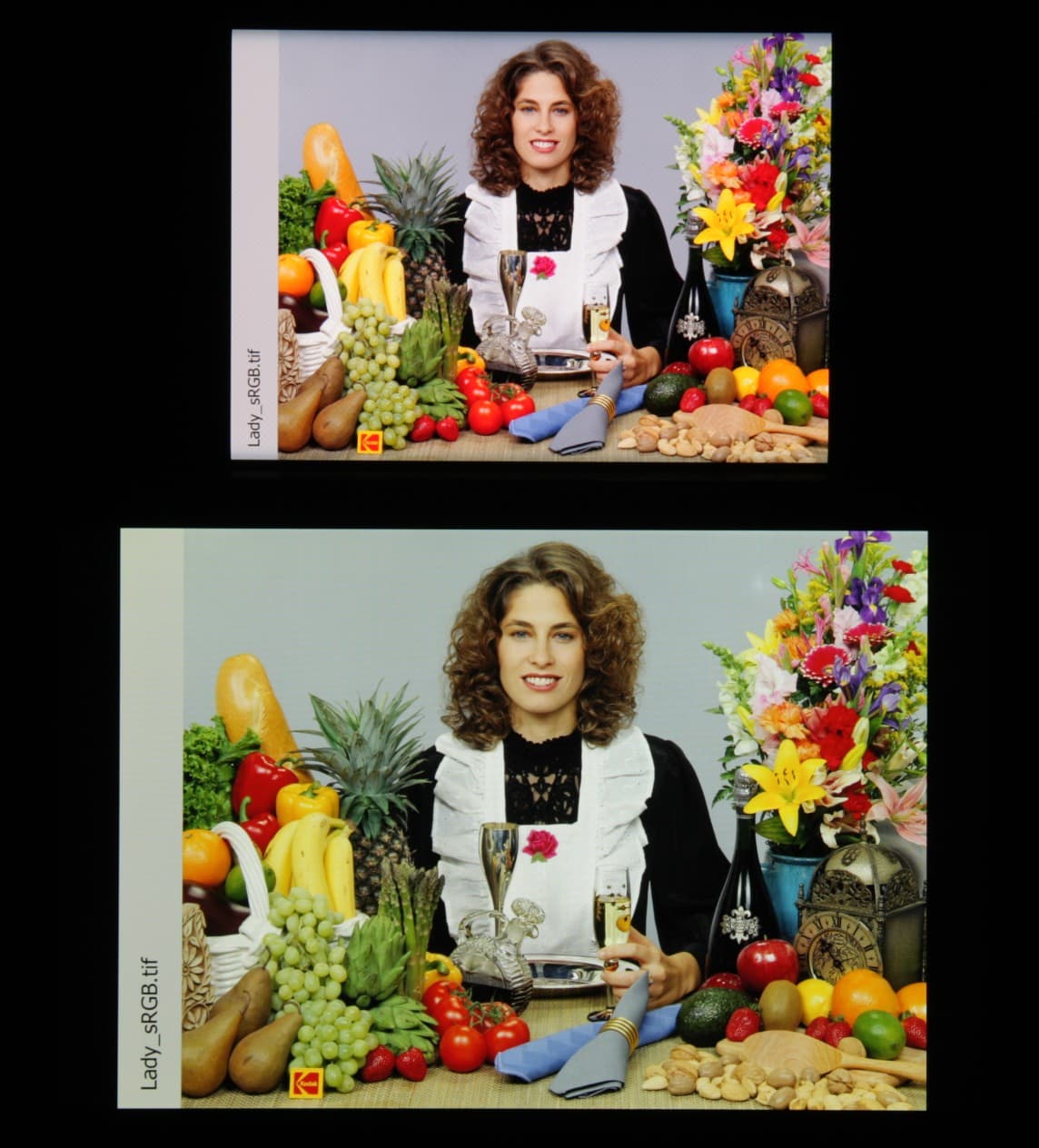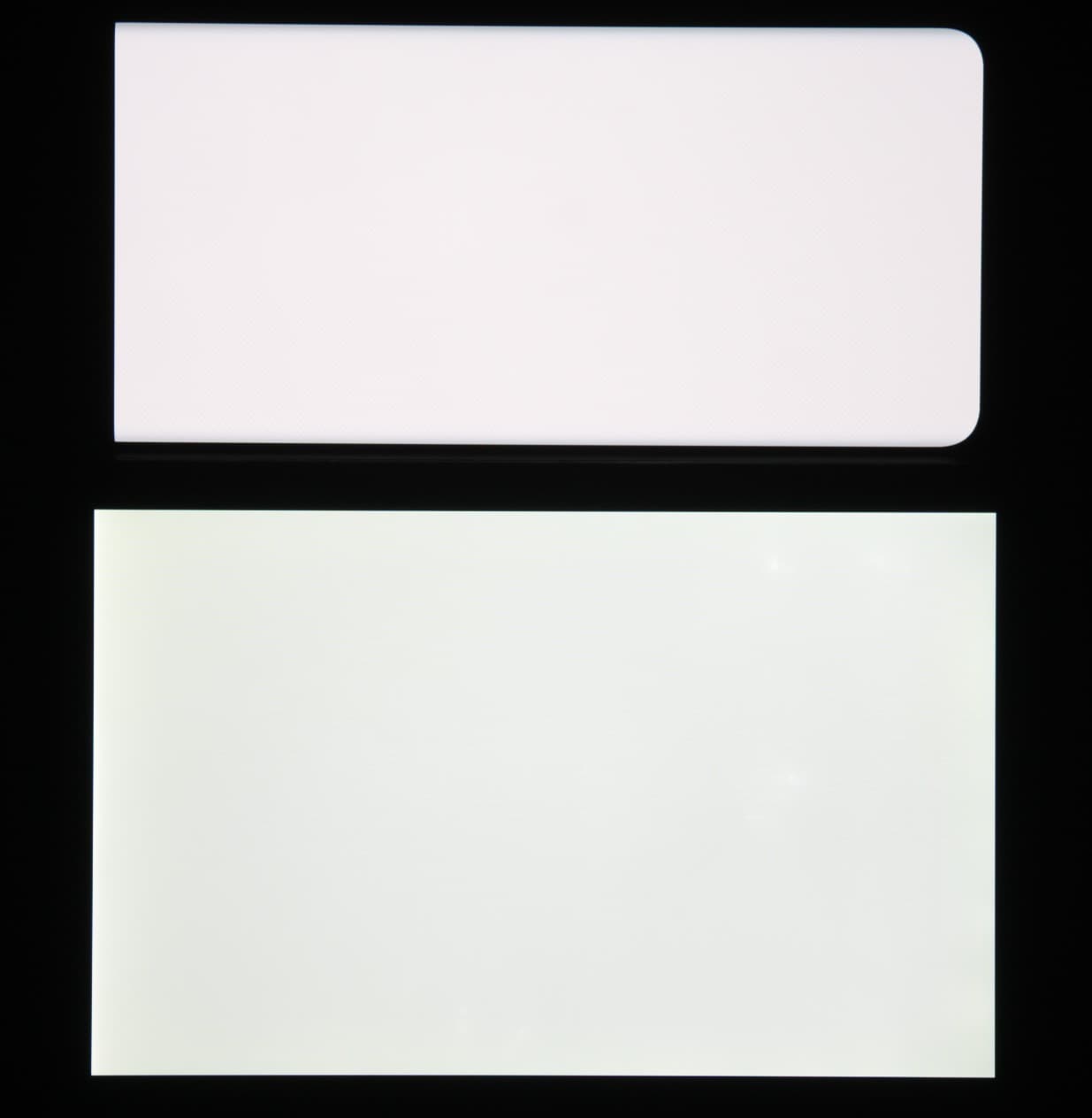 Отметим хорошую равномерность яркости и цветового тона белого поля (за исключением едва видимого затемнения и изменения оттенка к загнутым краям).