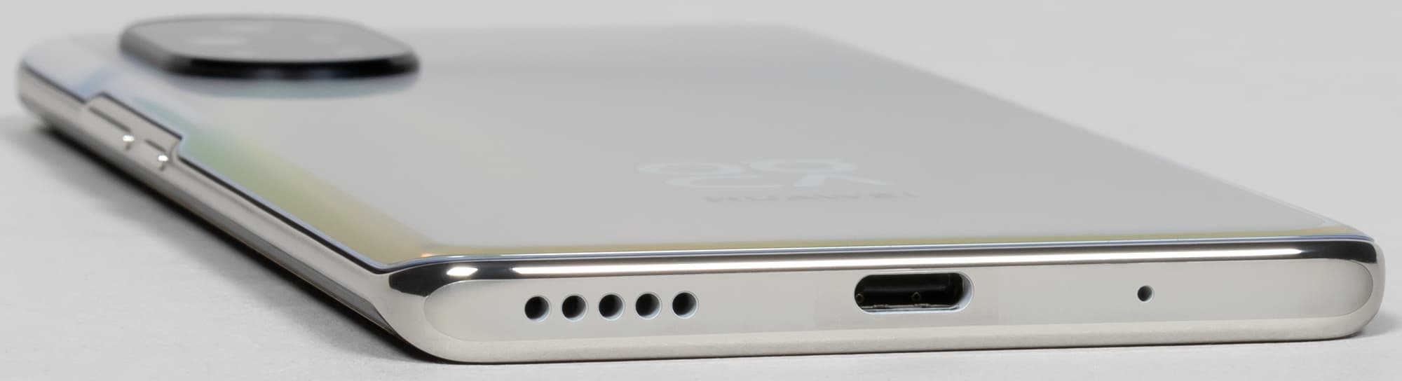 В торце снизу установлены динамик, микрофон и разъем USB Type-C. Для 3,5-миллиметрового аудиовыхода для наушников тоже места не нашлось, а жаль. Любопытно, что для укладки антенн перемычки из композитного материала врезаны в металлическую рамку в виде полноразмерных вставок на торцах, а не тонких полосок, как это обычно бывает.