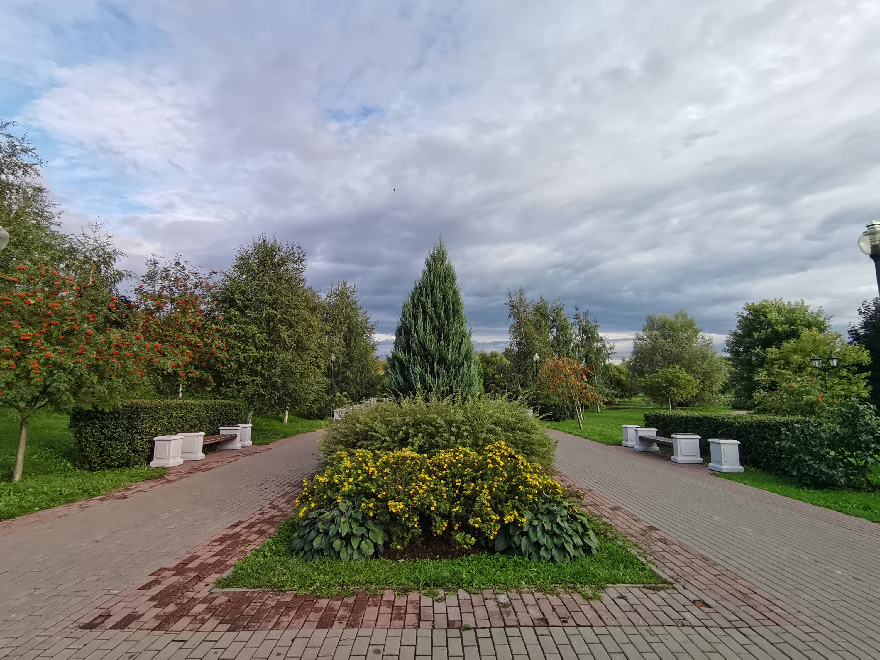 Основной 64-мегапиксельный модуль умеет снимать в разрешении 16 Мп с объединением пикселей Quad Bayer. Как минимум, это помогает лучше справляться с недостаточным освещением, что очень хорошо заметно по разнице в снимках ярких предметов в пасмурную погоду. В таких условиях использование режим 16 Мп явно предпочтительнее. При включении этого режима, кстати, кадр немного обрезается, так что результат получается не чистым масштабированием 1:2.