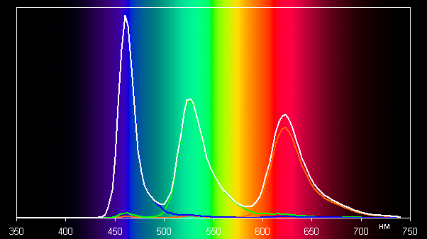 В случае профиля Обычные баланс оттенков на шкале серого хороший, так как на белом поле цветовая температура лишь немного ниже стандартных 6500 К (порядка 6300 К), и отклонение от спектра абсолютно черного тела (ΔE) 7 единиц, что для потребительского устройства считается приемлемым показателем.