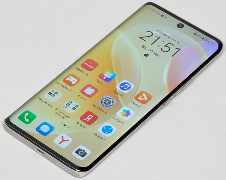 Цветопередача хорошая, цвета в меру насыщенные, цветовой баланс у экранов немного различается. Напомним, что фотография не может служить надежным источником сведений о качестве цветопередачи и приводится только для условной наглядной иллюстрации. В частности, выраженный красноватый оттенок белого и серого полей, присутствующий на фотографиях экрана Huawei Nova 8, при перпендикулярном взгляде визуально отсутствует, что подтверждается аппаратными тестами с помощью спектрофотометра. Причина в том, что спектральная чувствительность матрицы фотоаппарата неточно совпадает с этой характеристикой человеческого зрения. Заметим, что в данном случае картинка занимает в высоту (при ландшафтной ориентации экрана) всю доступную для вывода изображения область и заходит на загнутые края экрана, что приводит к легкому затемнению и искажению цвета. Также на свету эти области почти всегда бликуют, что еще больше мешает при просмотре изображений, выведенных на весь экран. И даже картинка фильмов с соотношением сторон 16:9 заходит на загибы, что очень не к месту в случае видео.
