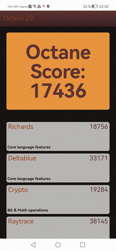 | Google Octane 2 (больше — лучше) | 17436 | 15103 | 17377 | 13169 | 14852 |