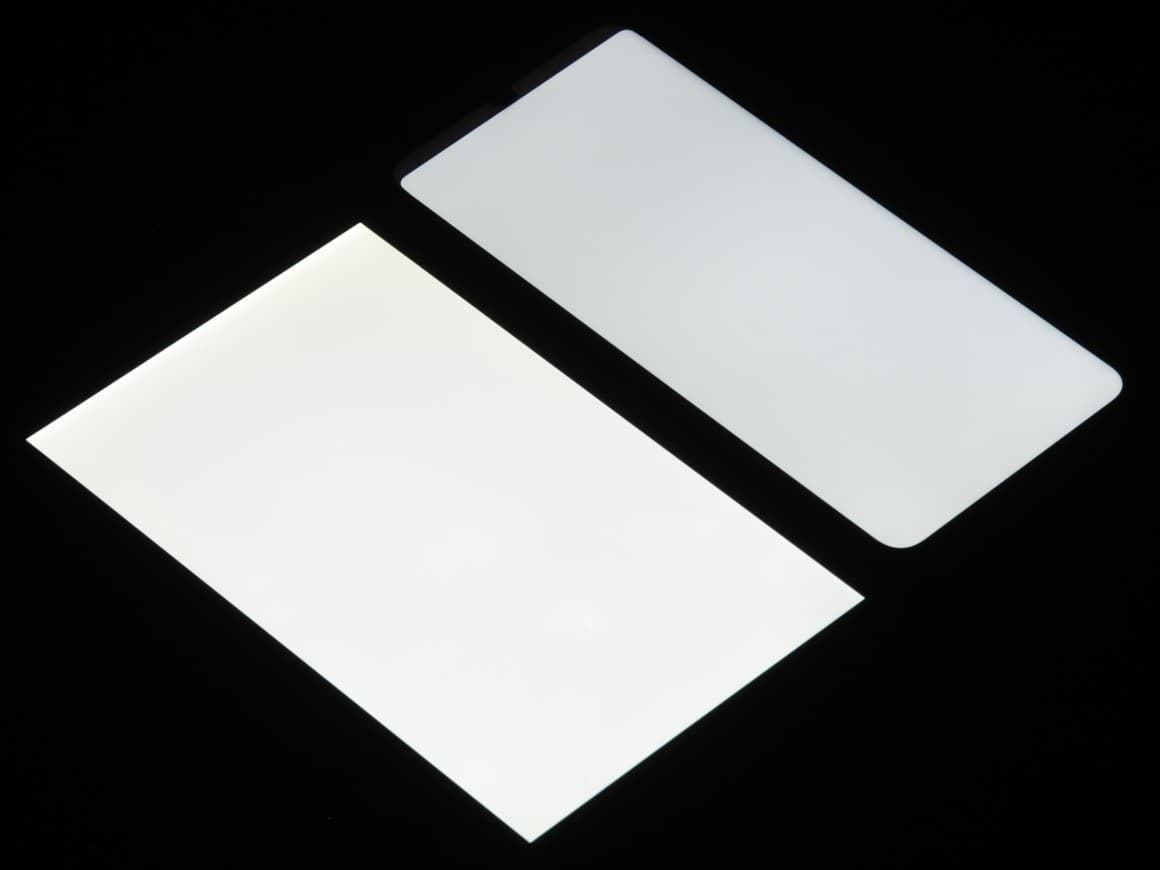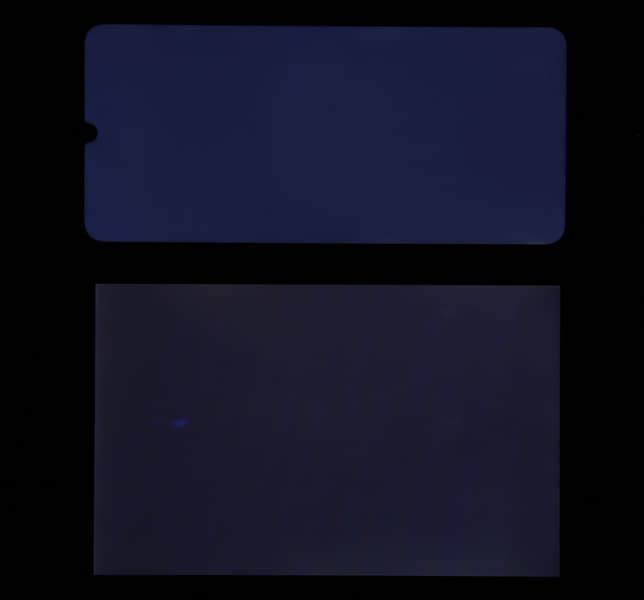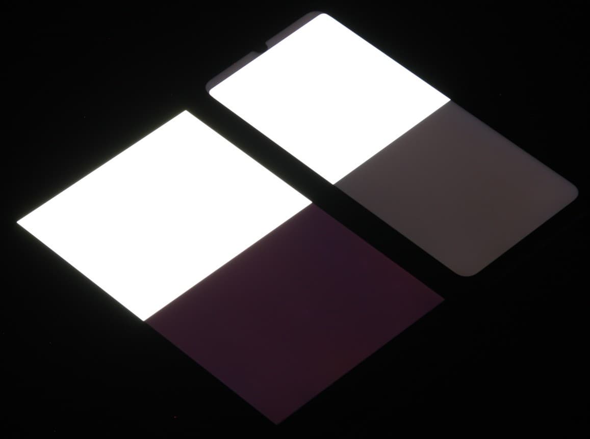 При перпендикулярном взгляде равномерность черного поля хорошая (для наглядности яркость подсветки на смартфоне установлена на максимум):