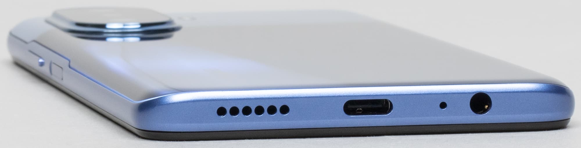 На торце сверху нет ничего, кроме вспомогательного микрофона. Внизу размещены 3,5-миллиметровый аудиовыход для наушников, динамик, микрофон и разъем USB Type-C.