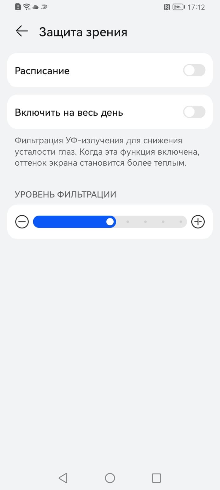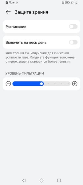 Присутствует уже традиционная настройка, позволяющая снизить интенсивность синей компоненты.