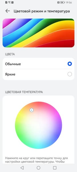 В этом устройстве есть возможность скорректировать цветовой баланс с помощью регулировки оттенка на цветовом круге или просто выбором одного из трех предустановленных профилей.