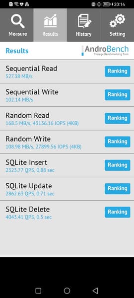 Результаты теста AndroBench на скорость работы с памятью: