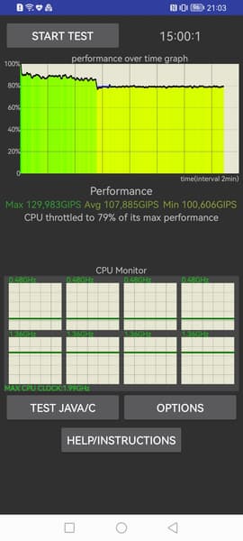 Тестирование традиционно проводилось на обычном уровне энергопотребления без использования функций энергосбережения, хотя таковые в аппарате имеются. Условия тестирования: выставлен минимальный комфортный уровень яркости (примерно 100 кд/м²). Тесты: беспрерывное чтение в программе Moon+ Reader (со стандартной, светлой темой); беспрерывный просмотр видео в HD-качестве (720р) через домашнюю сеть Wi-Fi; игра Injustice 2 с автонастройками графики.