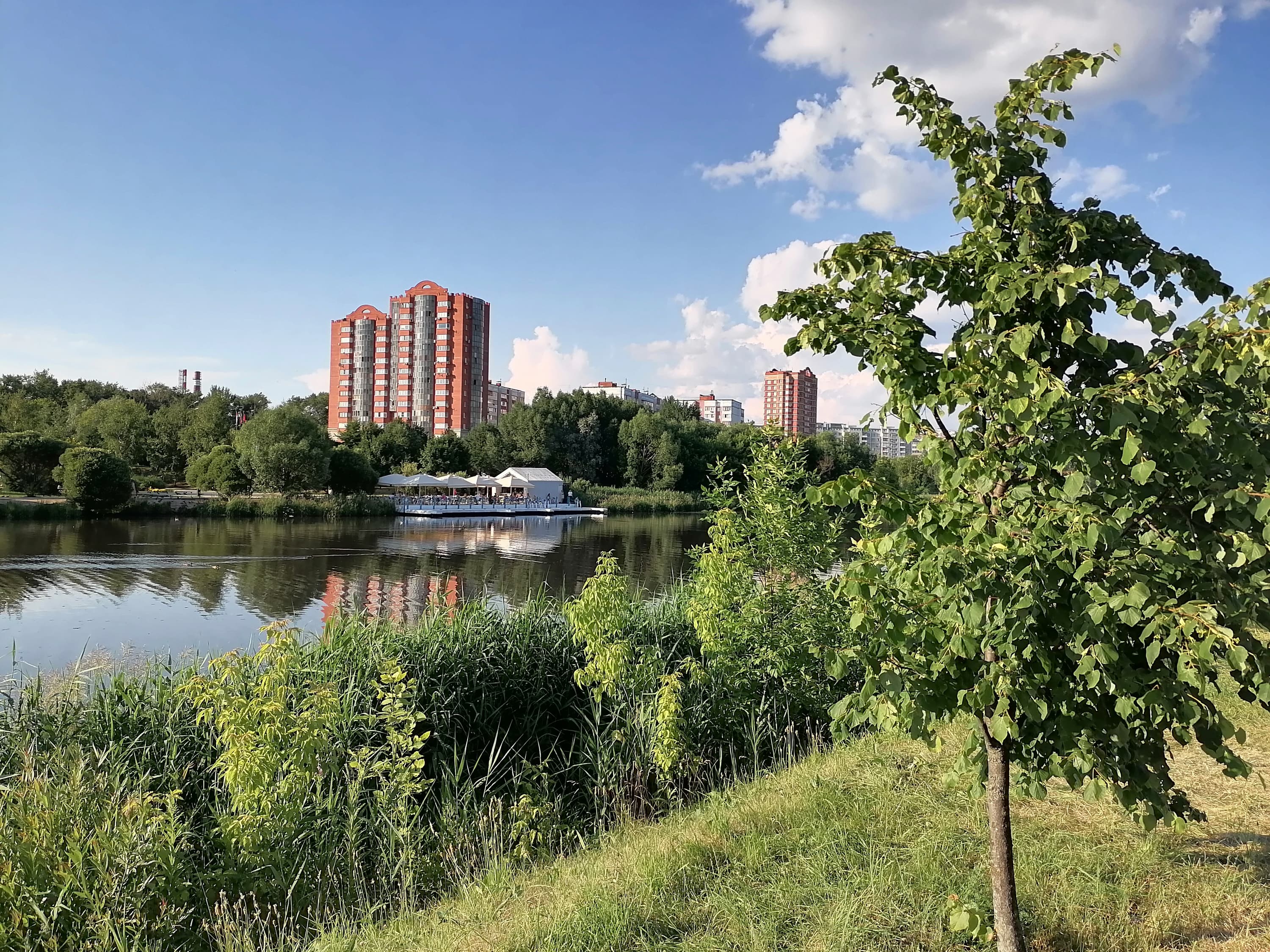 В обоих режимах — с функцией объединения пикселей и в полном разрешении — камера выдает практически идентичные снимки за исключением уровня детализации, которая на 48-мегапиксельных снимках выше, но не намного. Картинка в обоих режимах перешарплена, и при разглядывании полноразмерных фото 1:1 это смотрится совсем плохо. Кроме того, на снимках 48 Мп заметны артефакты от недодавленных шумов даже на дневном небе. В остальном камера для своего уровня неплохая; снимайте в 12 Мп — и получите вполне приемлемый результат. Снимки контрастные, яркие, с достоверной цветопередачей. Уровень детализации далеко не максимальный, а динамический диапазон матрицы не позволяет обойдись без пересветов. В режиме HDR-auto, который установлен по умолчанию и предпочтителен при съемке на ярком солнце, картинка как будто выцветает, становится более блеклой.