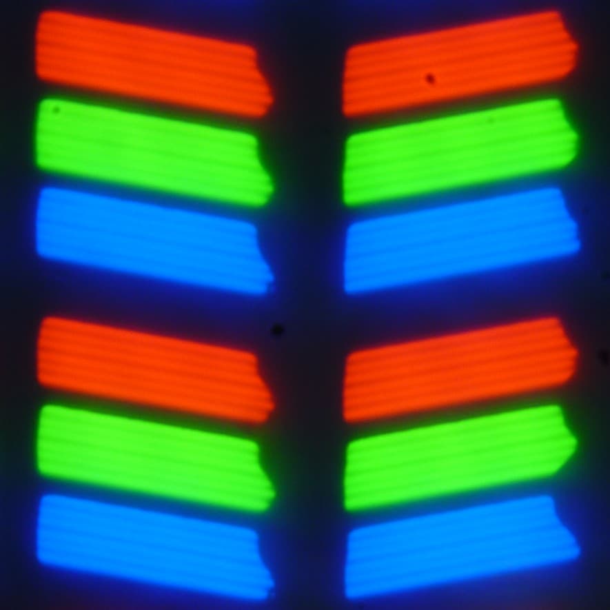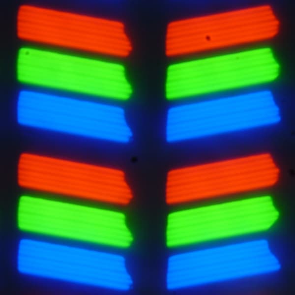 В данном смартфоне используется матрица типа IPS. Микрофотографии демонстрируют типичную для IPS структуру субпикселей: