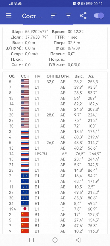 - GPS/A-GPS, Глонасс, Galileo, BDS, QZSS