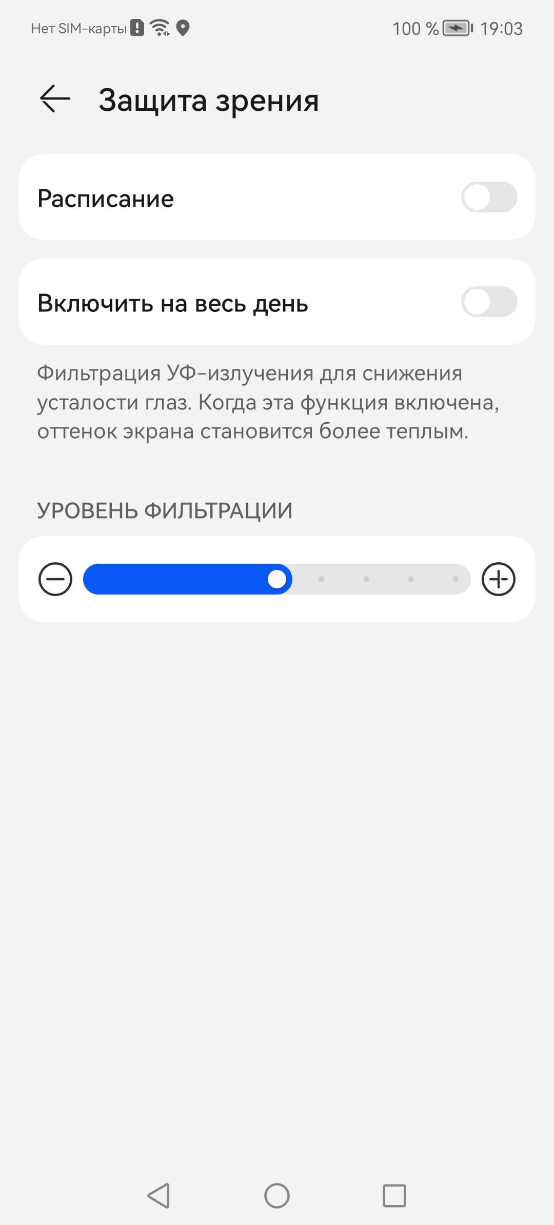 Присутствует уже традиционная настройка, позволяющая снизить интенсивность синей компоненты.