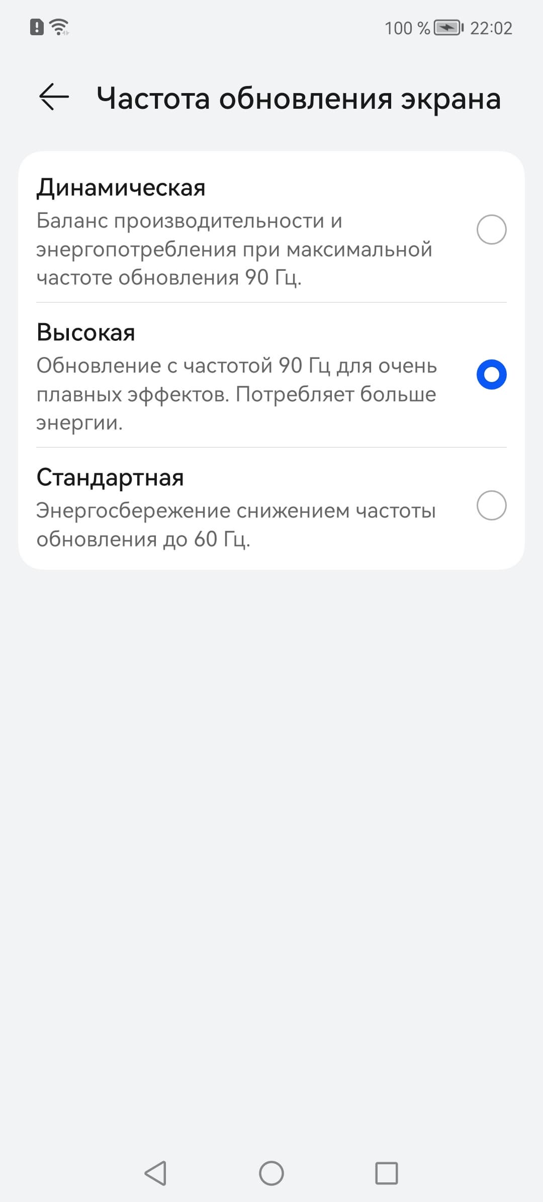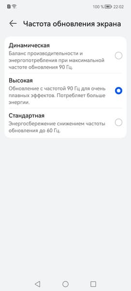 В настройках экрана можно включить режимы с повышенной до 90 Гц частотой обновления, притом в режиме Динамическая нам обещают автоматический выбор частоты:
