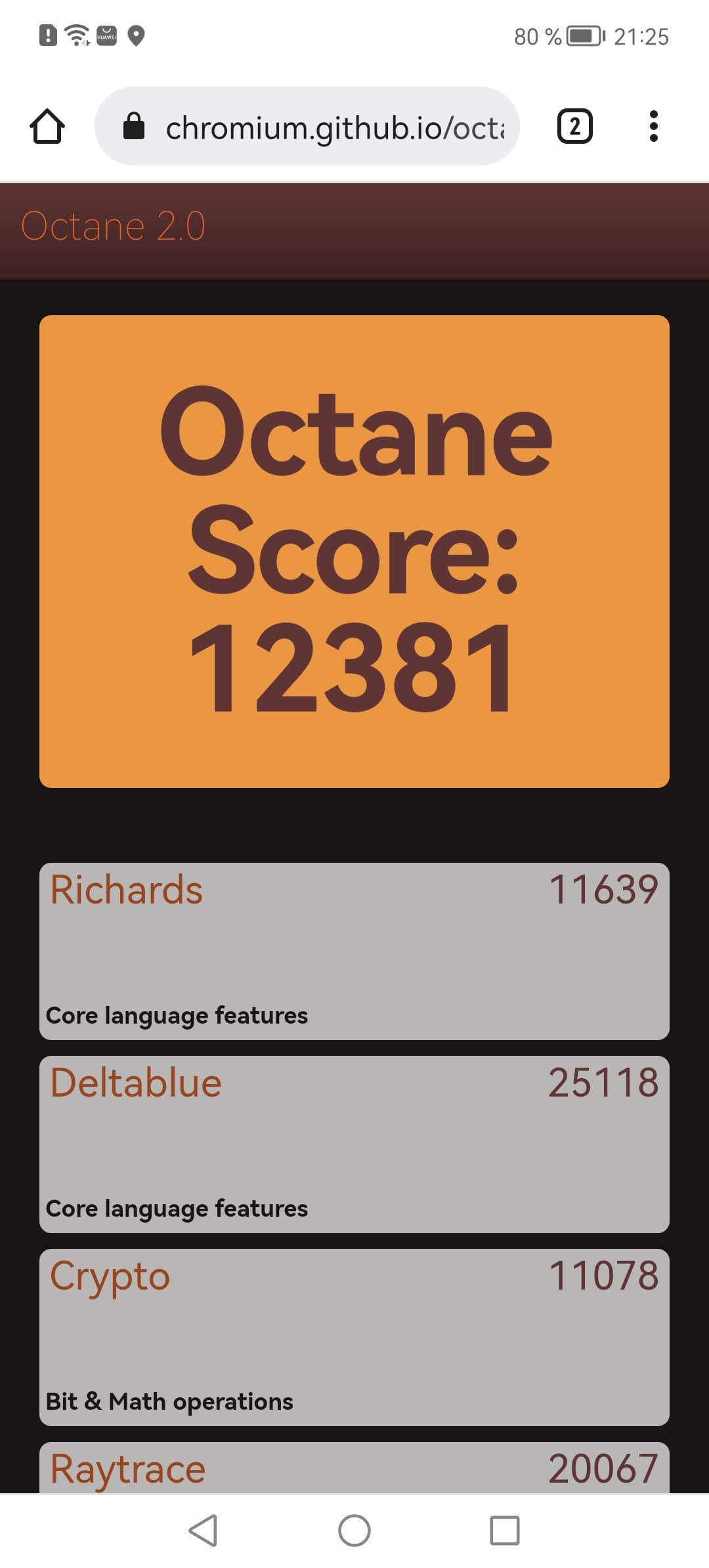 | Google Octane 2 (больше — лучше) | 12381 | 12999 | 11501 | 12337 | 7390 |
