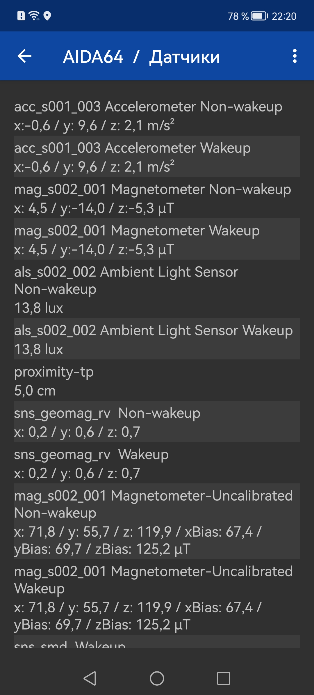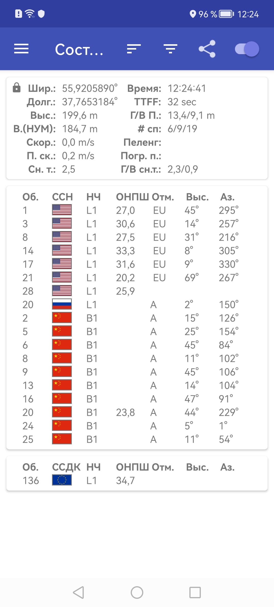 Навигационный модуль работает с GPS (с A-GPS), Глонасс, BeiDou, Galileo, QZSS. Первые спутники при холодном старте обнаруживаются быстро, точность позиционирования не вызывает претензий. А вот гироскопа у смартфона, к сожалению, не нашлось.