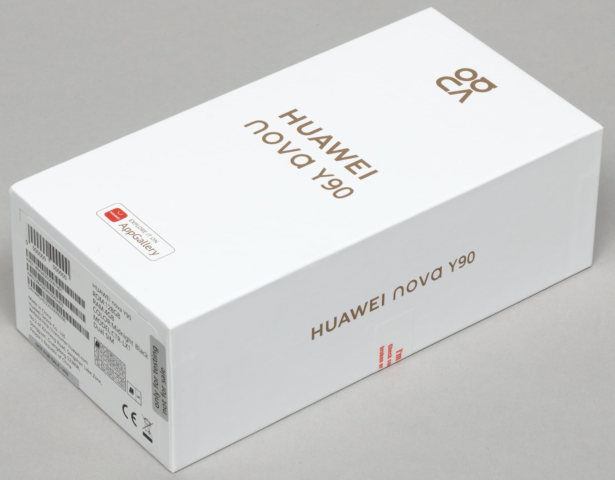 Huawei Nova Y90 поставляется в твердой картонной упаковке с нейтральным оформлением.