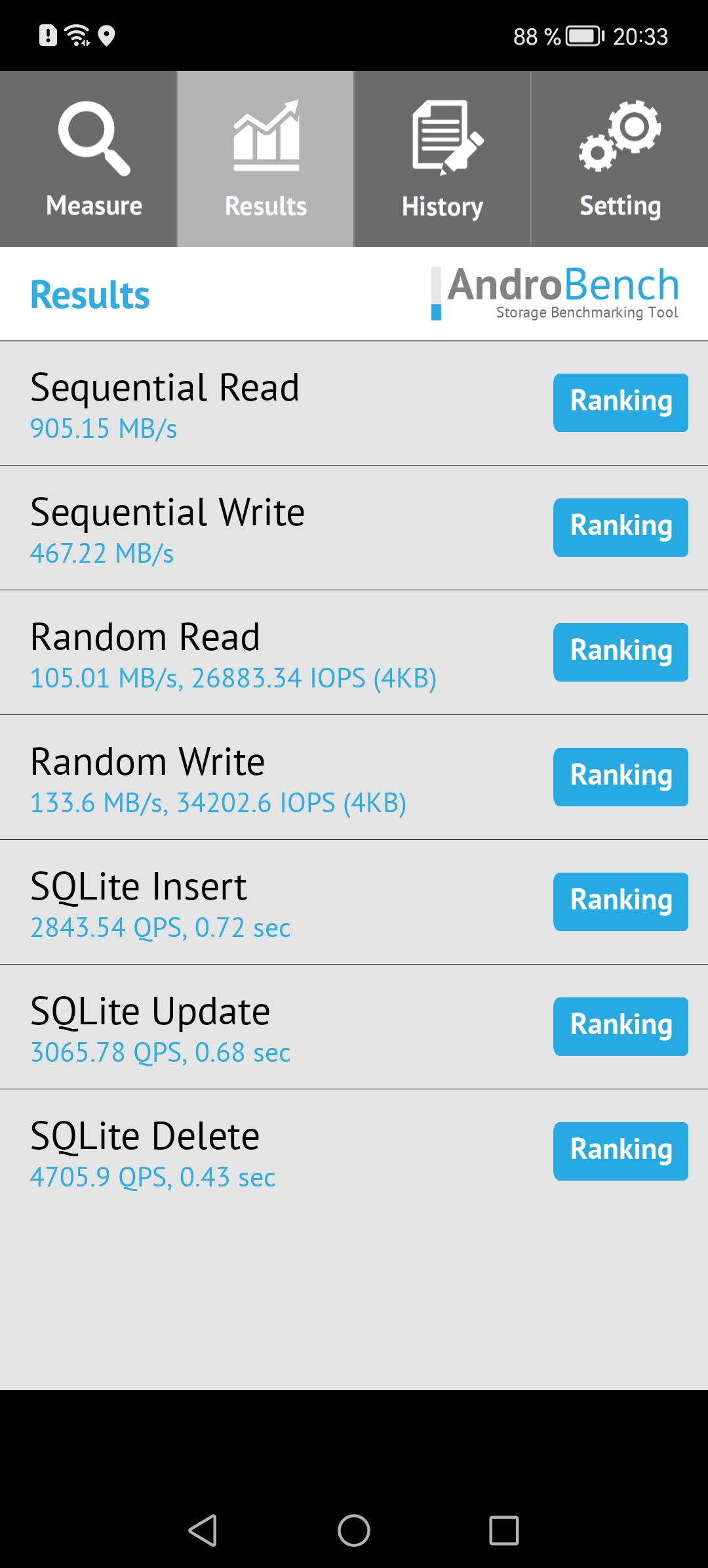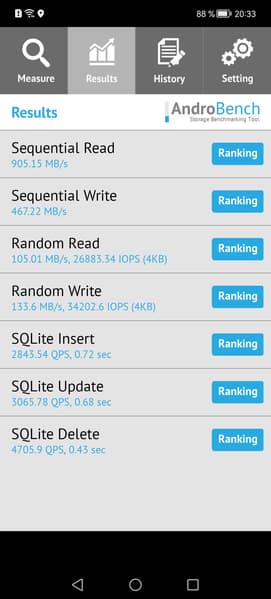 Результаты теста AndroBench на скорость работы с памятью: