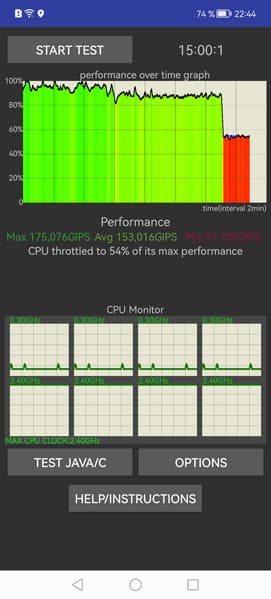 Смартфон Huawei Nova Y90 получил батарею достойного объема (5000 мА·ч), но продемонстрировал достаточно большой разброс результатов в тестах автономной работы даже после нескольких прогонов: максимальный в режиме чтения и весьма невысокий в режиме просмотра локального видео в разрешении 720p через проигрыватель MX Player. Игровой режим для многочасовой проверки здесь недоступен, поскольку все смартфоны Huawei наотрез отказываются запускать игру Injustice 2 даже после успешной установки через .apk.