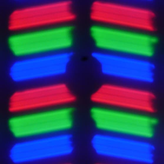 В данном смартфоне используется матрица типа IPS. Микрофотографии демонстрируют типичную для IPS структуру субпикселей:
