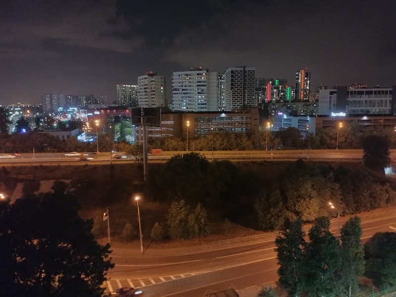 Ночной режим на удивление неплох: он не задирает экспозицию, не высветляет картинку и не добавляет неадекватно резкости, успешно балансируя между резкостью и шумами. Не беря в расчет упомянутые проблемы с пятнами нерезкости из-за оптики, в целом обработка в ночном режиме удается смартфону неплохо.