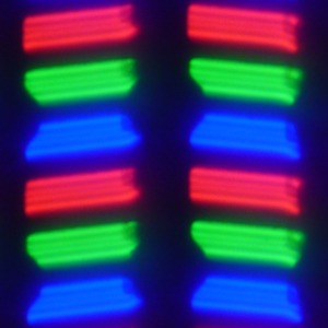 В данном смартфоне используется матрица типа IPS. Микрофотографии демонстрируют типичную для IPS структуру субпикселей: