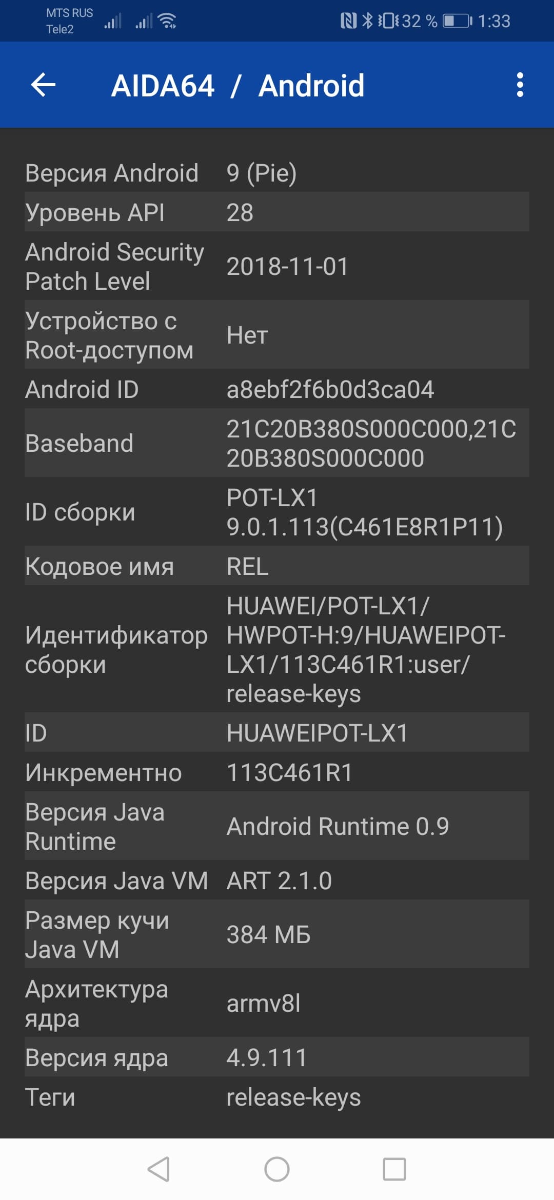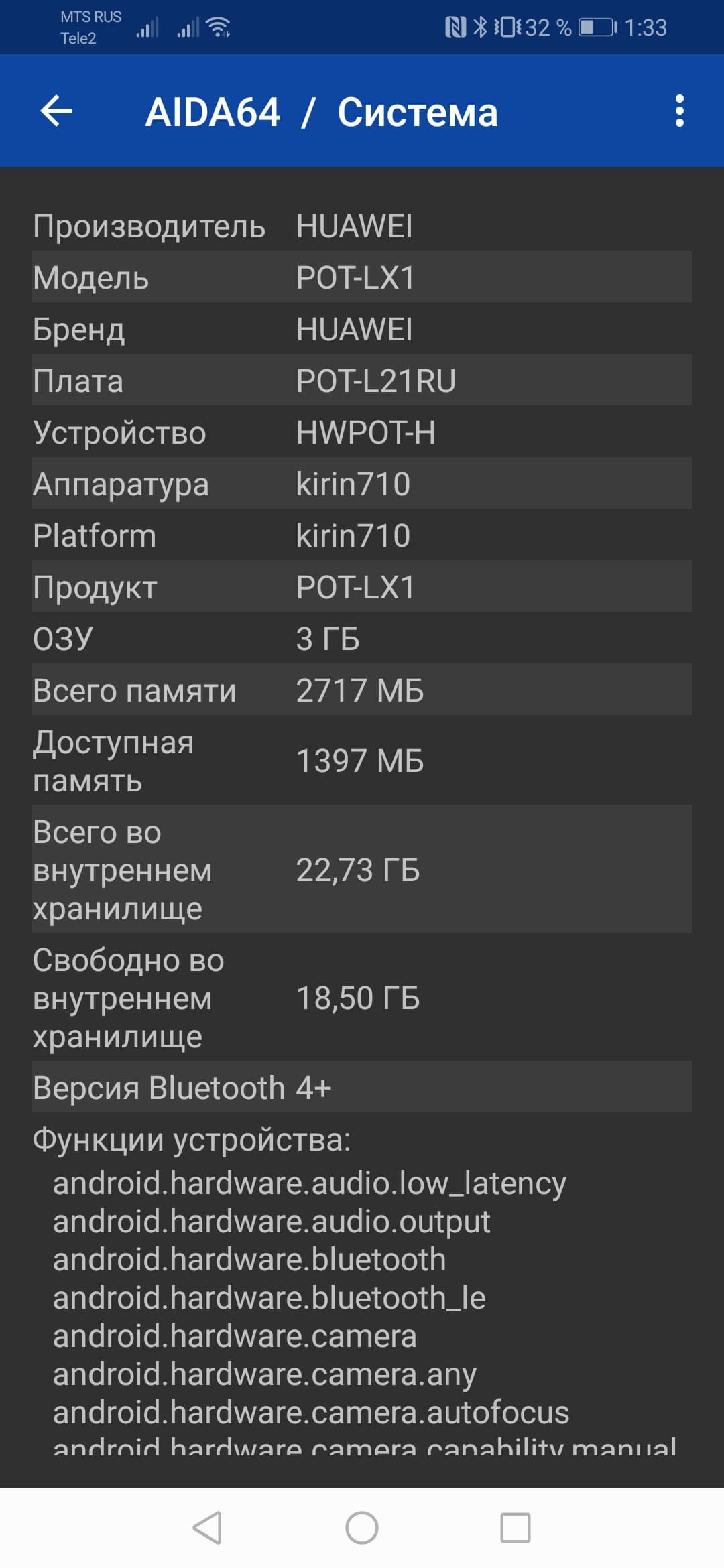 - Оперативная память (RAM) 3 ГБ, внутренняя память 32 ГБ