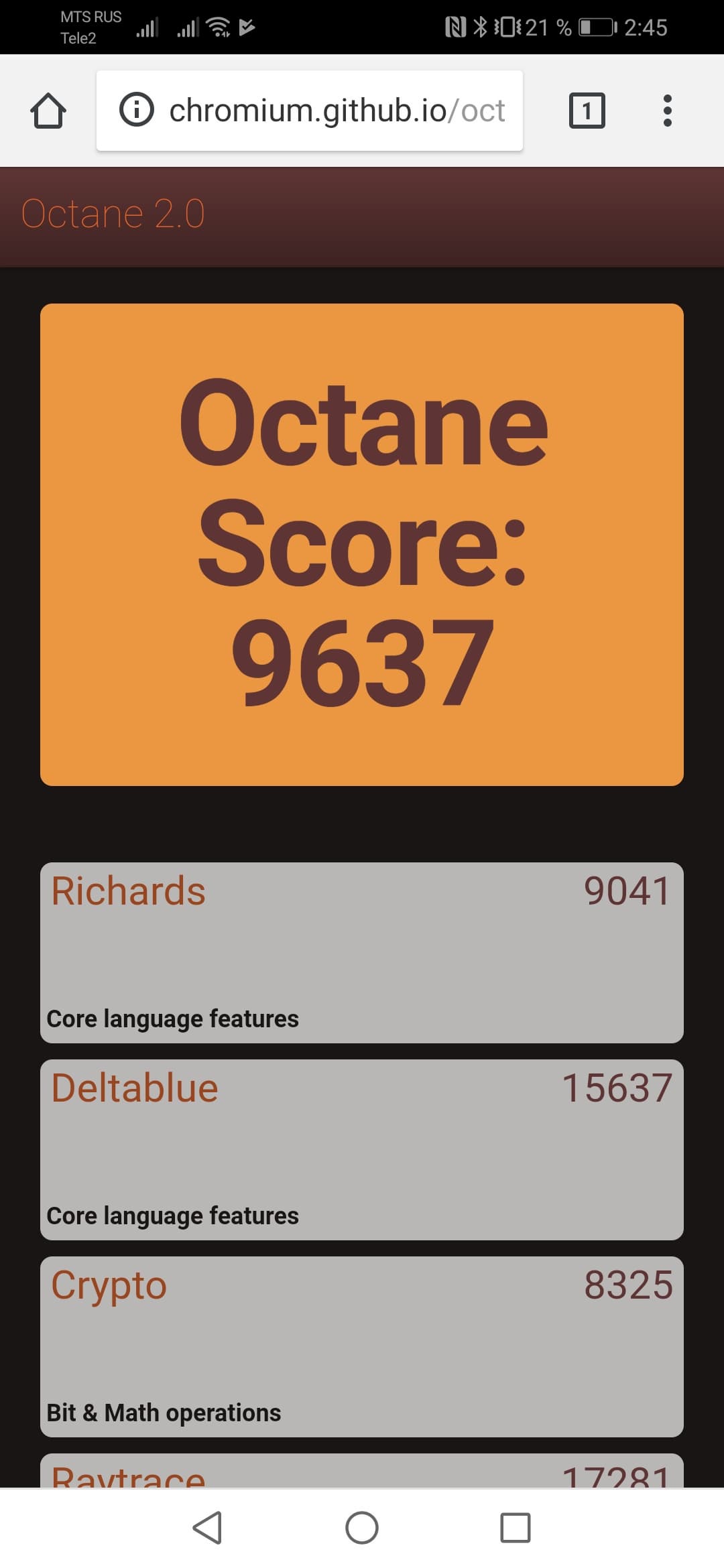 | Google Octane 2 (больше — лучше) | 9637 | 9817 | 10127 | 8328 | 8875 |