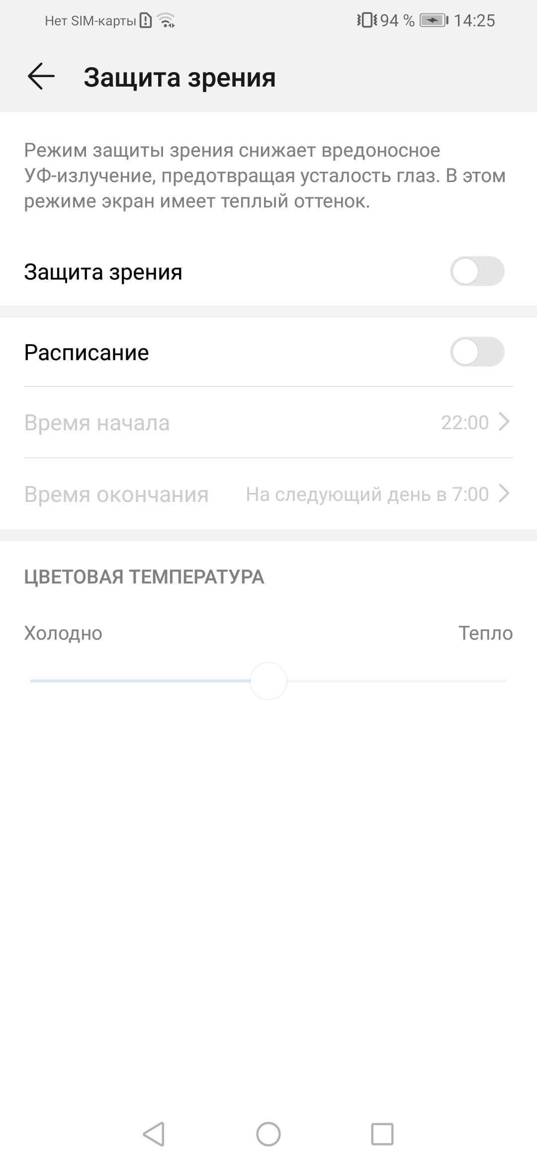 Присутствует модная настройка, позволяющая снизить интенсивность синей компоненты.