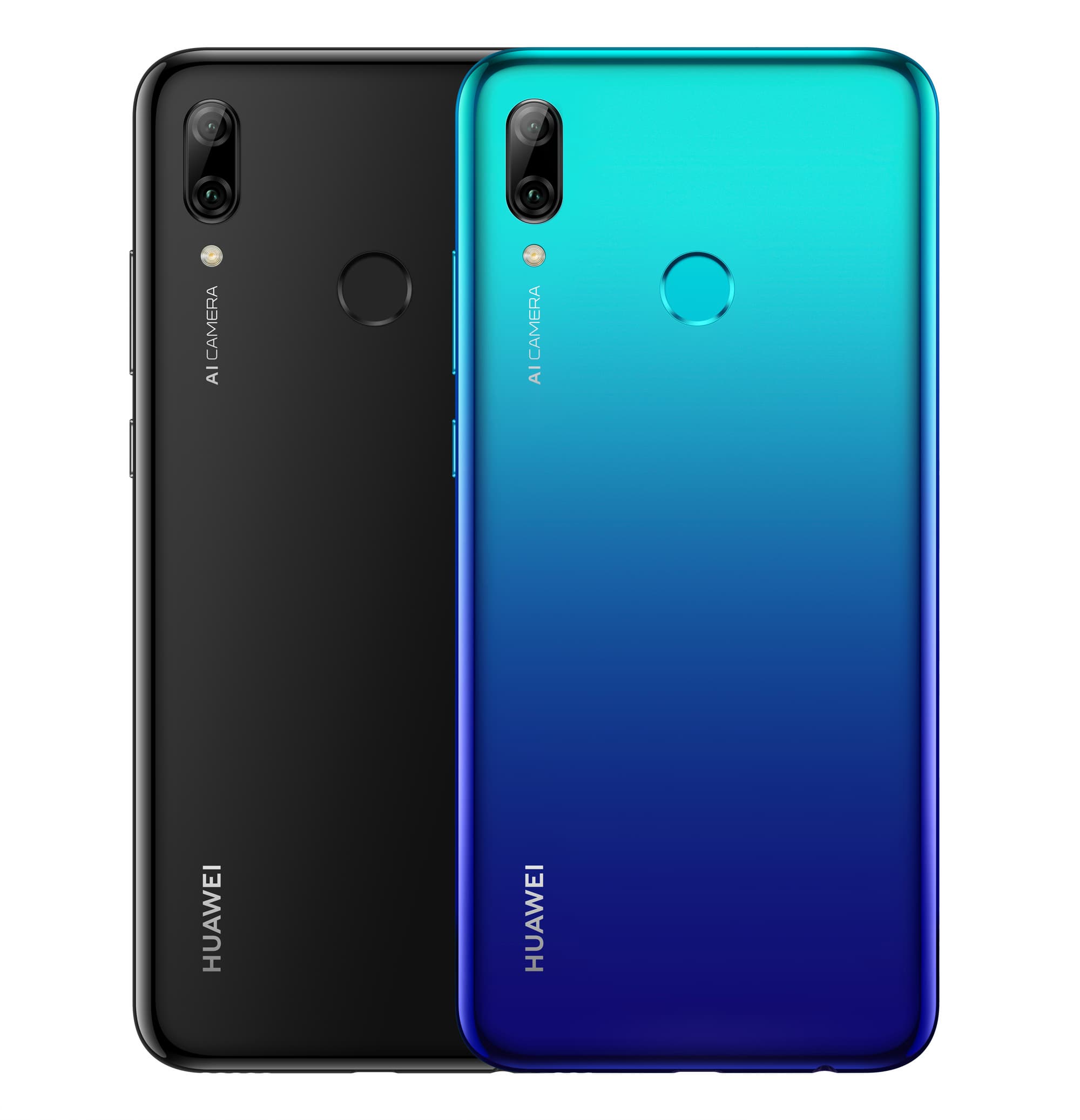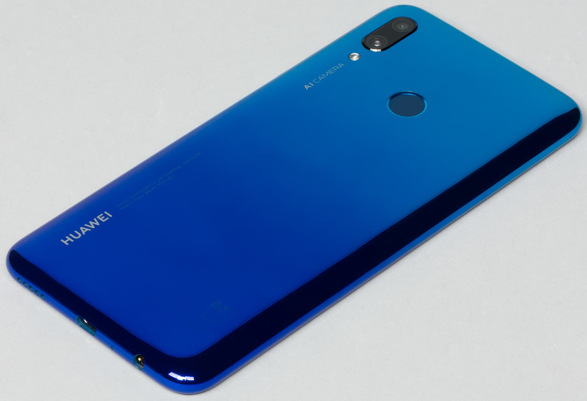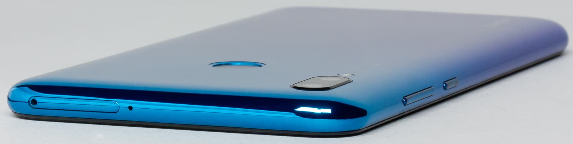 Huawei P Smart 2019 предлагается в двух вариантах расцветки корпуса: «Полночный черный» (Midnight Black) и «Ярко-голубой» (Aurora Blue). Голубой вариант имеет градиентный переход цвета, а черный окрас сплошной. Защиты от пыли и влаги смартфон не получил.