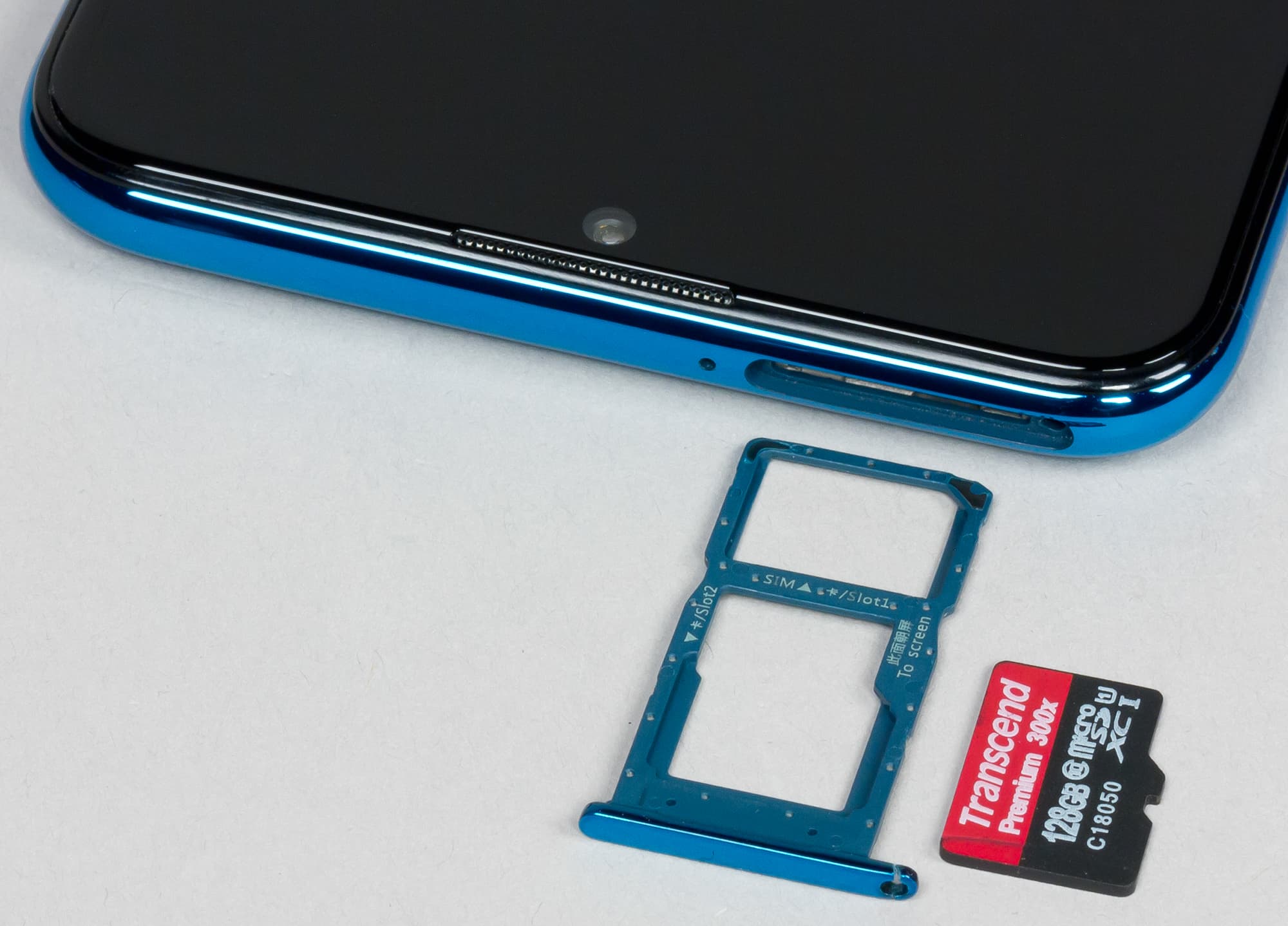 Печальная новость заключается в том, что Huawei P Smart 2019 не поддерживает одновременную установку двух Nano-SIM-карт и карты памяти microSD. Придется чем-то жертвовать, вставляя две карточки в этот гибридный разъем, от которого сейчас уже, к счастью, большинство производителей отходит. Поддерживается горячая замена карточек.