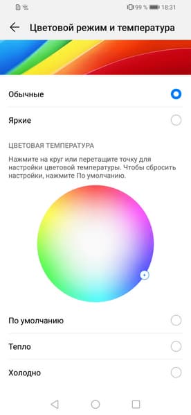 В этом устройстве есть возможность скорректировать цветовой баланс с помощью регулировки оттенка на цветовом круге.